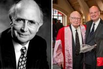 Caption: Dr Martin Neary pictured, including (right) with Dr Stephen Layton, a former Winchester Cathedral chorister, at the RCO Conferment in 2024.